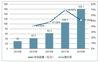 隨著人工智能產業的持續火熱,及以上三大因素的強力驅動下,全球及國內智能語音市場規模保持高速增長。2017 年全球智能語音市場規模達到 110.3 億美元,同比增長 30%,預計 2018年全球智能語音市場規模將達到 141.1 億美元;同時,2017 年中國智能語音市場規模達到 105.7 億元,同比增長70%,2018年中國智能語音市場規模進一步增長,達到 159.7 億元。