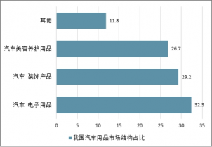 我國(guó)汽車用品市場(chǎng)結(jié)構(gòu)占比情況