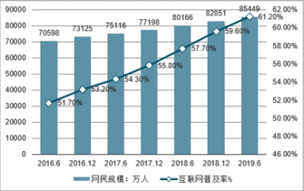 圖表 2015-2019年我國網(wǎng)民規(guī)模及互聯(lián)網(wǎng)普及率