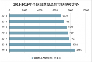 按收益劃分的全球煙草制品的市場規模由2013年的6779億美元以復合年增長率3.6%增加至2018年的8092億美元。2019年全球煙草制品的市場規模預計達到8593億美元。