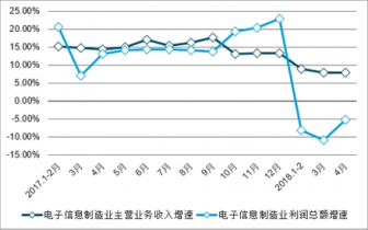 2017-2018年4月電子信息制造業(yè)主營業(yè)務收入、利潤總額增速情況