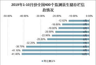 2019年1-10月份全國400個監(jiān)測縣生豬存欄信息情況