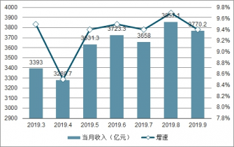 2019年1-9月我國餐飲收入額及增長