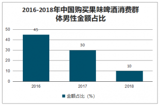 2016-2018年中國購買果味啤酒消費群體男性金額占比