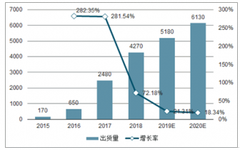 全球智能音箱市場(chǎng)近幾年實(shí)現(xiàn)爆發(fā)式增長(zhǎng),出貨量由2015年的170萬(wàn)臺(tái)增長(zhǎng)至2016年650 萬(wàn)臺(tái),增長(zhǎng)率為282.35%,2017年出貨量約為2,480萬(wàn)臺(tái),較同期增長(zhǎng)率為281.54%。預(yù)計(jì)2018年至2020年,全球智能音箱市場(chǎng)將逐漸進(jìn)入成熟期,增長(zhǎng)率雖相對(duì)放緩但仍保持高位,出貨量在2020年將達(dá)6,130萬(wàn)臺(tái)。