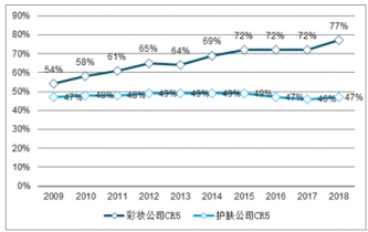 2018年高端彩妝、護膚CR5升至77%、47%