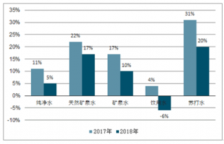 2017-2018年中國(guó)不同品類(lèi)瓶裝水銷(xiāo)售增速對(duì)比