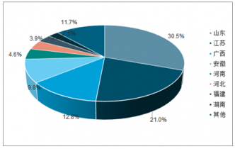 我國膠合板產(chǎn)量地區(qū)分布較為不均勻,主要集中在華東地區(qū)和華南地區(qū)。產(chǎn)量排名前三名的省市合計占據(jù)了全國64.23%的份額。山東省為膠合板產(chǎn)出大省,以30.50%的產(chǎn)量份額位居全國首位;江蘇、廣西、安徽、河南分列第二至第五位,產(chǎn)量份額分別為20.96%、12.77%、9.83%和4.60%。