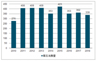 2010-2018年中國螢石消費(fèi)量統(tǒng)計(jì)