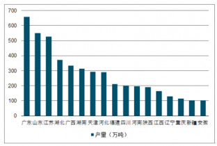 精制食用植物油產(chǎn)量向優(yōu)勢(shì)地區(qū)進(jìn)一步集中,2018年中國(guó)精制食用植物油產(chǎn)量超過(guò)百萬(wàn)噸的省份有17個(gè),其中廣東、山東以及江蘇分別以659.49萬(wàn)噸、550.94萬(wàn)噸和526.11萬(wàn)噸位居前三位。