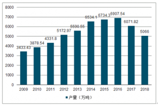 2009-2018年中國精制食用植物油產(chǎn)量情況