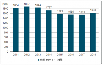 2011-2018年中國糖料作物種植面積