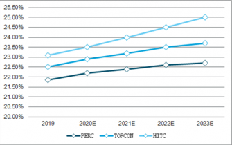 HIT從硅片、漿料、設備等入手完成降本任務。從HIT電池的成本構成入手尋找其未來成本的下降空間,首先是硅片,HIT電池結構對稱,易于薄片化,同時N型硅片薄片化也不會像P型硅片一樣影響效率,當硅片厚度變薄后,硅料的耗用量就會大大減少,硅片的生產(chǎn)成本也就隨之下降。其次漿料成本中主要是由于HIT的低溫工藝導致需使用低溫銀漿,而低溫銀漿的價格比普通銀漿更高,一方面可以逆向推動銀漿生產(chǎn)制造國產(chǎn)化,降低銀漿生產(chǎn)成本,另一方面通過工藝改進減少銀漿的使用量。最后折舊占比較大則是因為生產(chǎn)設備昂貴,未來可通過進一步擴大電池生產(chǎn)規(guī)模,達到規(guī)模化生產(chǎn)減少一定成本,同時與銀漿類似,推動HIT電池生產(chǎn)設備制造國產(chǎn)化、通過技術進步降低設備制造成本,從而降低HIT生產(chǎn)線成本,降低折舊在電池成本中的占比。