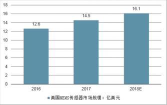 2016-2018年美國MEMS傳感器行業(yè)市場規(guī)模(億美元)