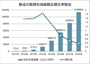 宏觀經濟形式變化和網民紅利觸頂的雙重因素影響,自2014年以來,移動互聯網市場發展迎來拐點,2018年,中國移動互聯網發展增速至38.35%。