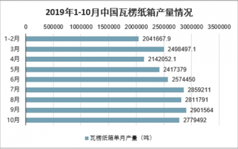 2019年1-10月中國瓦楞紙箱產(chǎn)量情況