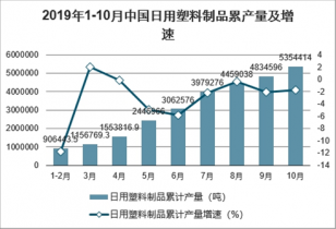 2019年1-10月中國日用塑料制品產(chǎn)量及增速