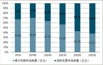 廢舊動力電池回收市場將從2018年開始爆發,預計2018年廢舊動力電池回收市場可達50億元規模,到2020年至2023年,廢舊動力電池回收市場規模將進一步增長到136億~311億元。