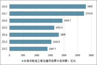 2012-2018年中國水庫及樞紐工程在建項目累計投資額走勢