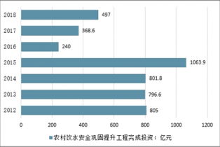 2017年中國農村飲水安全鞏固提升工程完成投資368.6億元,2018年成投資497億元。
