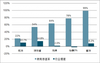 調(diào)味品子品類使用滲透率及增速