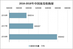2017年全國蠶繭產量63.57萬噸,同比增長2.53%。據全國20個主產省(市、區)報送數據,2018年全國蠶繭收購量為65.8萬噸,較上年增長4.5%,其中西部地區蠶繭收購量增長1.9%。