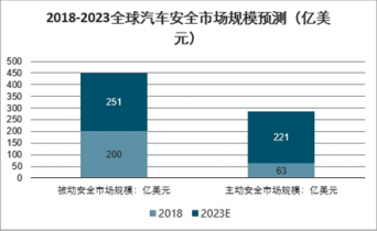 2018-2023全球汽車安全市場規(guī)模預(yù)測(億美元)