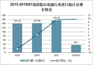 2015-2018Q1我國(guó)低壓電器行業(yè)進(jìn)口統(tǒng)計(jì)及增長(zhǎng)情況