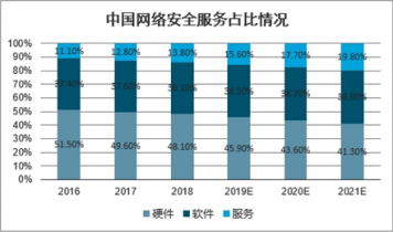 國市場安全服務(wù)占比將逐步提升,安全硬件增速將逐步放緩,2020年安全服務(wù)將達(dá)到市場占比20%