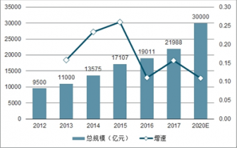 2012-2020年我國體育產(chǎn)業(yè)總規(guī)模及增速預測