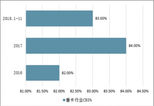 2016-2018年中國重卡行業(yè)CR5變化情況
