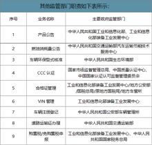 我國汽車行業(yè)的主要監(jiān)管部門為國家發(fā)改委、工信部、交通部、生態(tài)環(huán)境部、公安部、國家市場質(zhì)監(jiān)管理總局、國稅總局、商務(wù)部、財政部等。各個部門依照有關(guān)規(guī)定對汽車行業(yè)的生產(chǎn)、銷售、使用的不同環(huán)節(jié)進行協(xié)同管理和監(jiān)管。