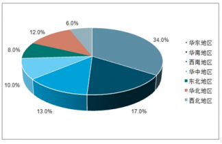 2018年中國主題公園分布情況(單位:%)