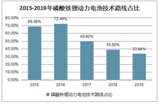 2015-2019年磷酸鐵鋰動力電池技術(shù)路線占比
