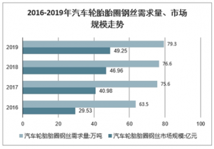 2016-2019年汽車輪胎胎圈鋼絲需求量、市場規模走勢