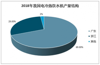 我國(guó)電冷熱飲水機(jī)產(chǎn)量區(qū)域分布集中在廣東省,2018年我國(guó)廣東省電冷熱飲水機(jī)產(chǎn)量達(dá)1768.7萬(wàn)臺(tái),占比達(dá)69%;浙江省電冷熱飲水機(jī)產(chǎn)量為743.67萬(wàn)臺(tái),占比為29%,廣東省、浙江省電冷熱飲水機(jī)產(chǎn)量占比達(dá)98%。