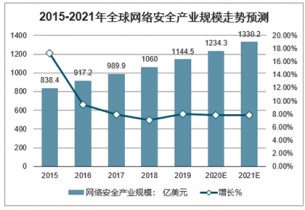 2015-2021年全球網(wǎng)絡(luò)安全產(chǎn)業(yè)規(guī)模走勢預(yù)測