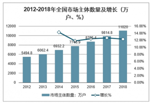2012-2018年全國市場主體數(shù)量及增長(萬戶、%)