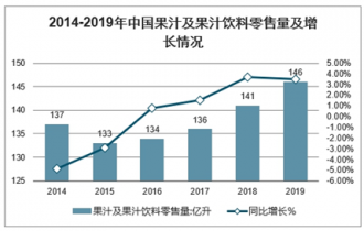 2014-2019年中國果汁及果汁飲料零售量及增長情況