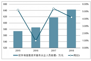 2015-2018年中國軟件和信息技術服務從業(yè)人員規(guī)模及增長走勢
