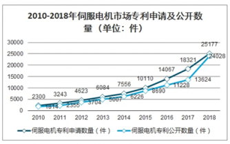 2010-2018年伺服電機市場專利申請及公開數量(單位:件)