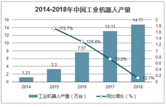 2018年,中國工業機器人產量為14.77萬臺,同比增長12.7%。2010年以來,中國企業在伺服電機領域研發投入整體呈現上升趨勢,相關專利申請及公開數量實現穩定增長。2018年,伺服電機行業相關專利申請數量達到25177件,同比增長37.4%,專利公開數量為24028件,同比增長76.4%。