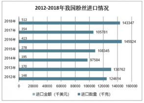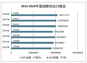 2012-2018年中國粉絲進口量均小于0.01萬噸,2018年粉絲出口量達到10.42萬噸。