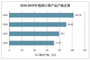 2019年我國口罩總產量超過50億只,口罩行業產值從2015年的63.18億元增長至2019年的102.35億元。