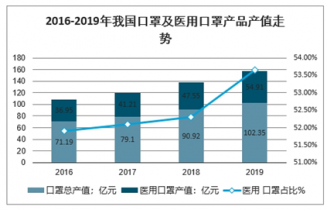 2016-2019年我國口罩及醫(yī)用口罩產(chǎn)品產(chǎn)值走勢(shì)