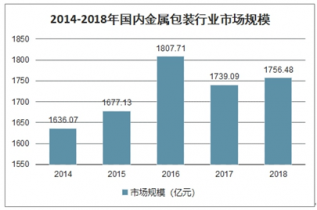 隨著國內(nèi)各行各業(yè)的產(chǎn)業(yè)升級,金屬包裝下游應(yīng)用領(lǐng)域不斷闊,使得金屬包裝行業(yè)市場規(guī)模在波動中不斷上升,2018年市場規(guī)模已達(dá)到1756.48億元左右,預(yù)計未來幾年這種增長的趨勢不會變化。