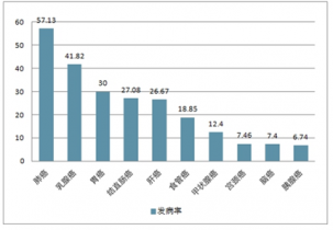 我國(guó)癌癥發(fā)病率TOP10(發(fā)病人數(shù)/10萬)