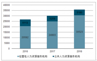 我國人力資源服務機構可分為以營利為目的的經營性人力資源服務機構和以社會保障為目的的公共人力資源服務機構。我國經營性質的人力資源服務企業數量從2016年的20582家增長至2018年的30523家,占比從77.1%提升至85.5%。《人力資源市場暫行條例》指出將進一步放寬人力資源服務行業的準入門檻,未來隨著城鎮就業人數的增加和行業政策的引導,經營性人力資源服務機構的從業企業數量和人員數量將進一步提高。