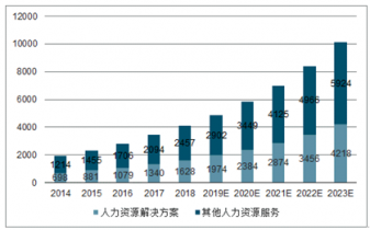 圖表:2015-2019年人力資源服務行業主營業務收入