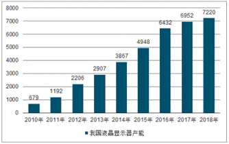 2010-2018年中國液晶顯示器產能變化
